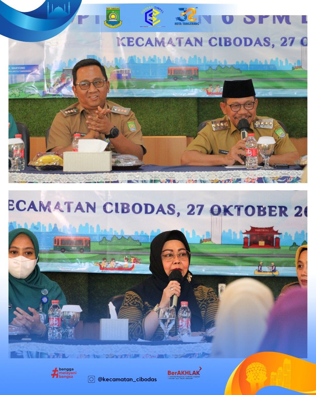 Walikota Tangerang H. Sachrudin bersama Camat Cibodas Buceu Gartina saat kegiatan peningkatan kapasitas bagi kader posyandu serta implementasi enam Standar Pelayanan Minimal (SPM) yang dilaksanakan di Aula Kecamatan Cibodas, Kota Tangerang.
