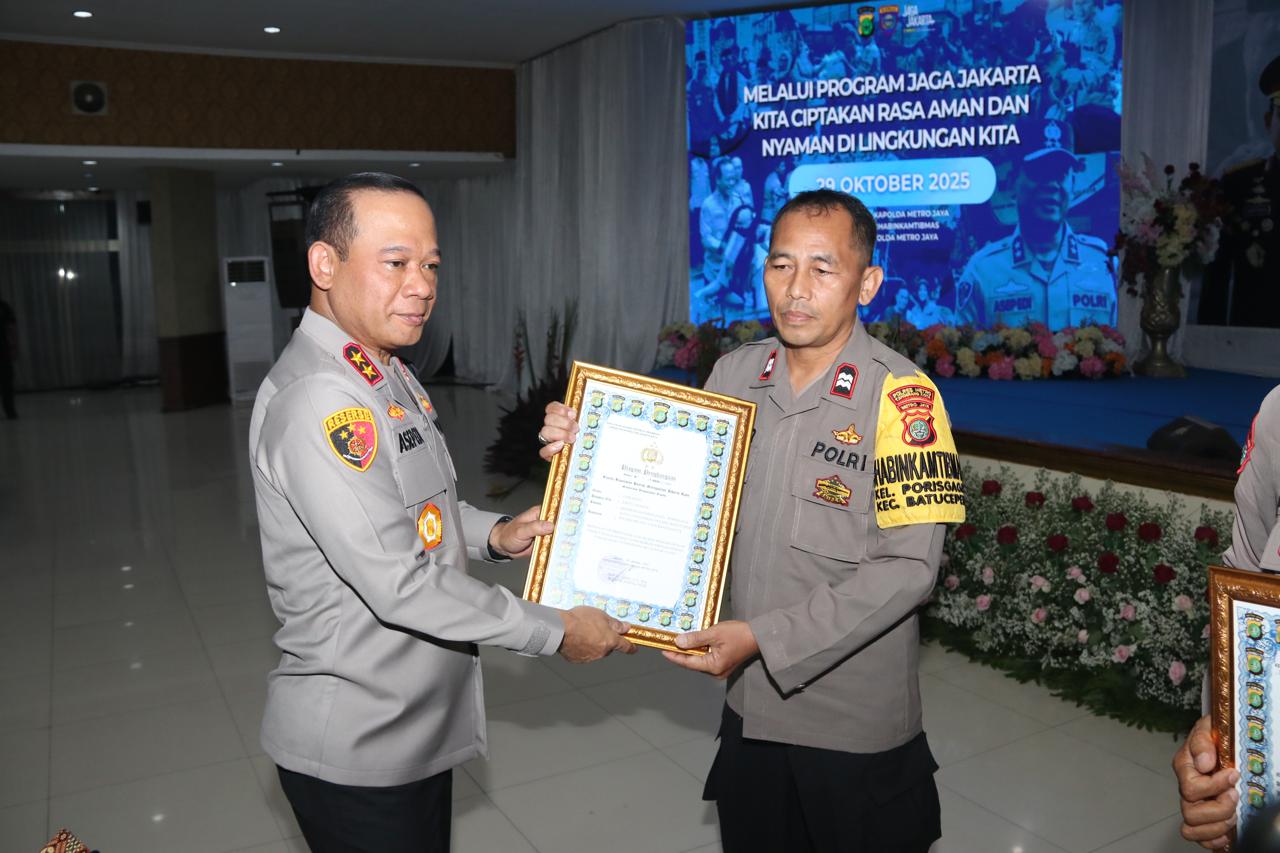 JAKARTA — Dalam kegiatan Arahan Kapolda Metro Jaya kepada Bhabinkamtibmas Jajaran Polda Metro Jaya yang digelar di Balai Pertemuan Polda Metro Jaya pada Rabu (29/10/2025), Aiptu Erwanto, Bhabinkamtibmas Kelurahan Poris Gaga, Polsek Batuceper, Polres Metro Tangerang Kota, menerima penghargaan sebagai Bhabinkamtibmas Teladan dari Kapolda Metro Jaya Irjen Pol Asep Edi Suheri, S.I.K., M.Si.