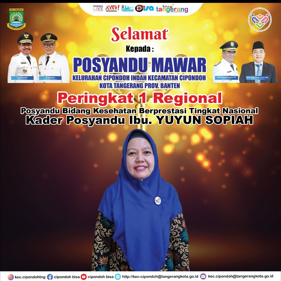 JAKARTA – Pos Pelayanan Terpadu (Posyandu) Mawar Rw03 di Kelurahan Cipondoh Indah, Kecamatan Cipondoh, Kota Tangerang meraih juara 1 regional di bidang kesehatan prestasi tingkat Nasional tahun 2015.
