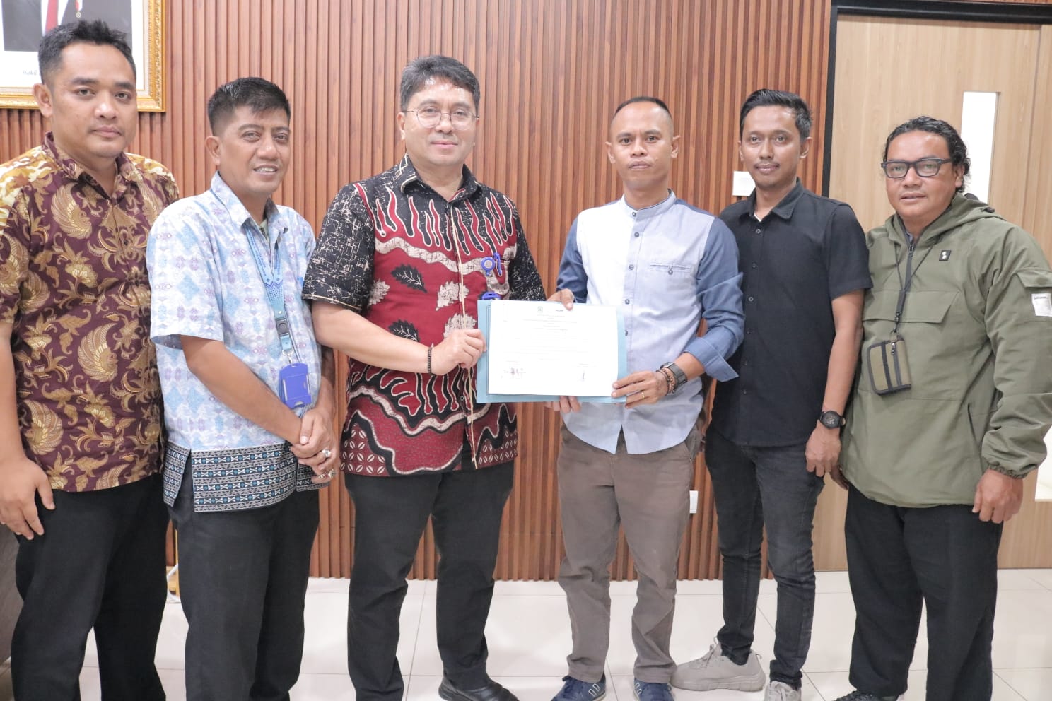 Direktur Umum Perumda Tirta Benteng, Tommy Herdiansyah Hadi, bersama Manajer Hubungan Pelanggan (Hublang) Perumda Tirta Benteng (TB) Kota Tangerang Budi H. Santoso, Humas Perumda TB kota Tangerang Syarif Hidayat serahkan nota kesepahaman kepada pengurus Fkwt.