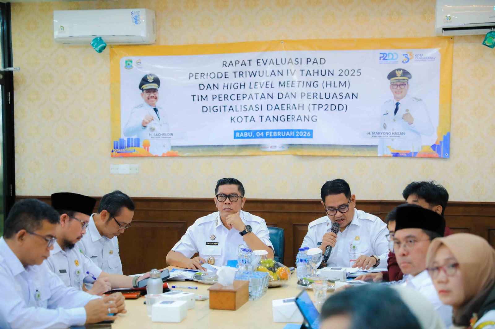 Apresiasi tersebut disampaikan saat memimpin Rapat Evaluasi PAD Periode Triwulan IV Tahun 2025 yang dirangkaikan dengan High Level Meeting (HLM) Tim Percepatan dan Perluasan Digitalisasi Daerah (TP2DD) Kota Tangerang, bertempat di Ruang Rapat Sekretaris Daerah, Pusat Pemerintahan Kota Tangerang, Rabu (04/02/2026). Kegiatan ini dihadiri oleh seluruh pimpinan OPD serta para pemangku kepentingan terkait.