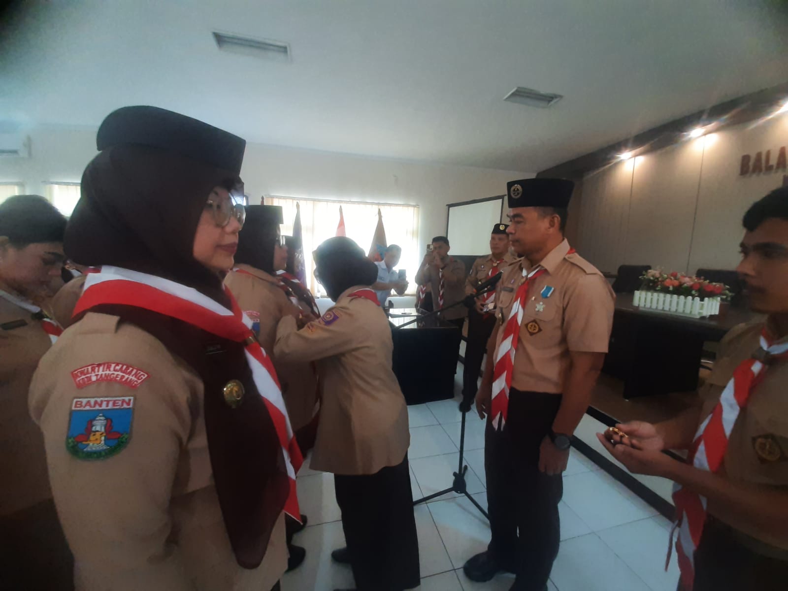 Pelantikan tersebut diawali dengan menyanyikan lagu Indonesia Raya serta Hymne Pramuka oleh para pengurus dan anggota. Disusul dengan penyampaian sambutan serta pengambilan sumpah para pengurus Pramuka Saka Kencana Kota Tangerang.
